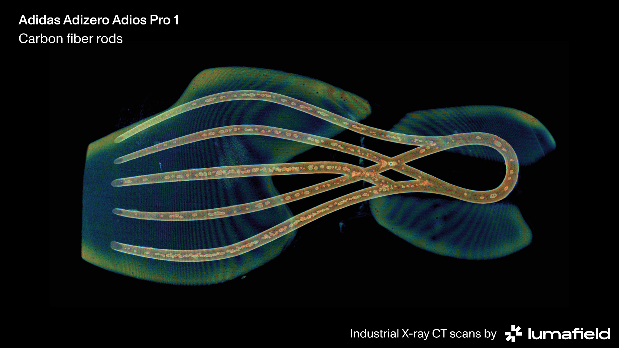 The scans confirmed the rod placement and bonded foam geometry. They also found something Adidas had not publicized.